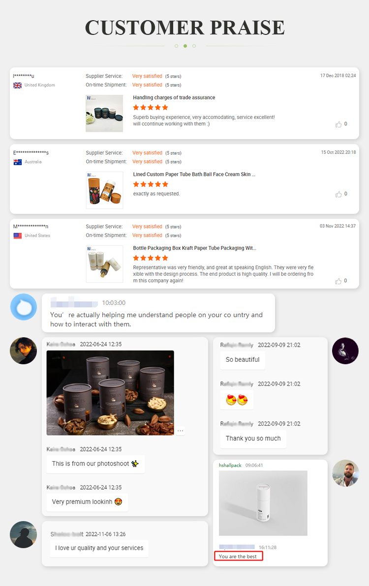 إذا كنت تريد أي منتجات تعبئة أنابيب ورقية، أو ورق مقوى، أو علب ورق بسحاب علوي، أو علب ورق معدنية، فسوف نقدم لك خدمة متكاملة